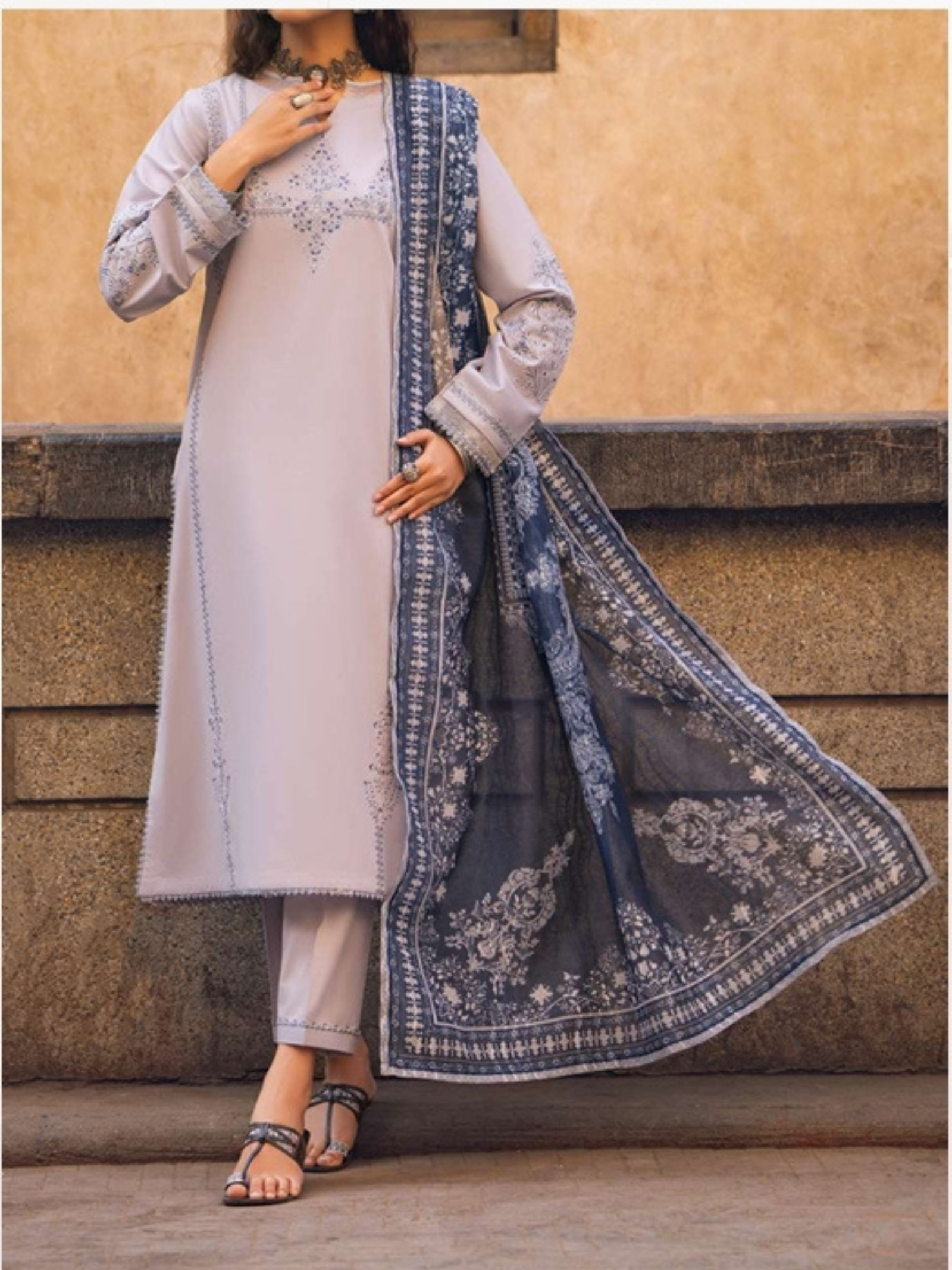 Serene Casual Suit” – A beautifully embroidered shirt with delicate detailing, paired with a straight-fit trouser for comfort and style. Complemented by a printed chiffon dupatta, adding grace to the ensemble. Perfect for an effortless casual look! ✨