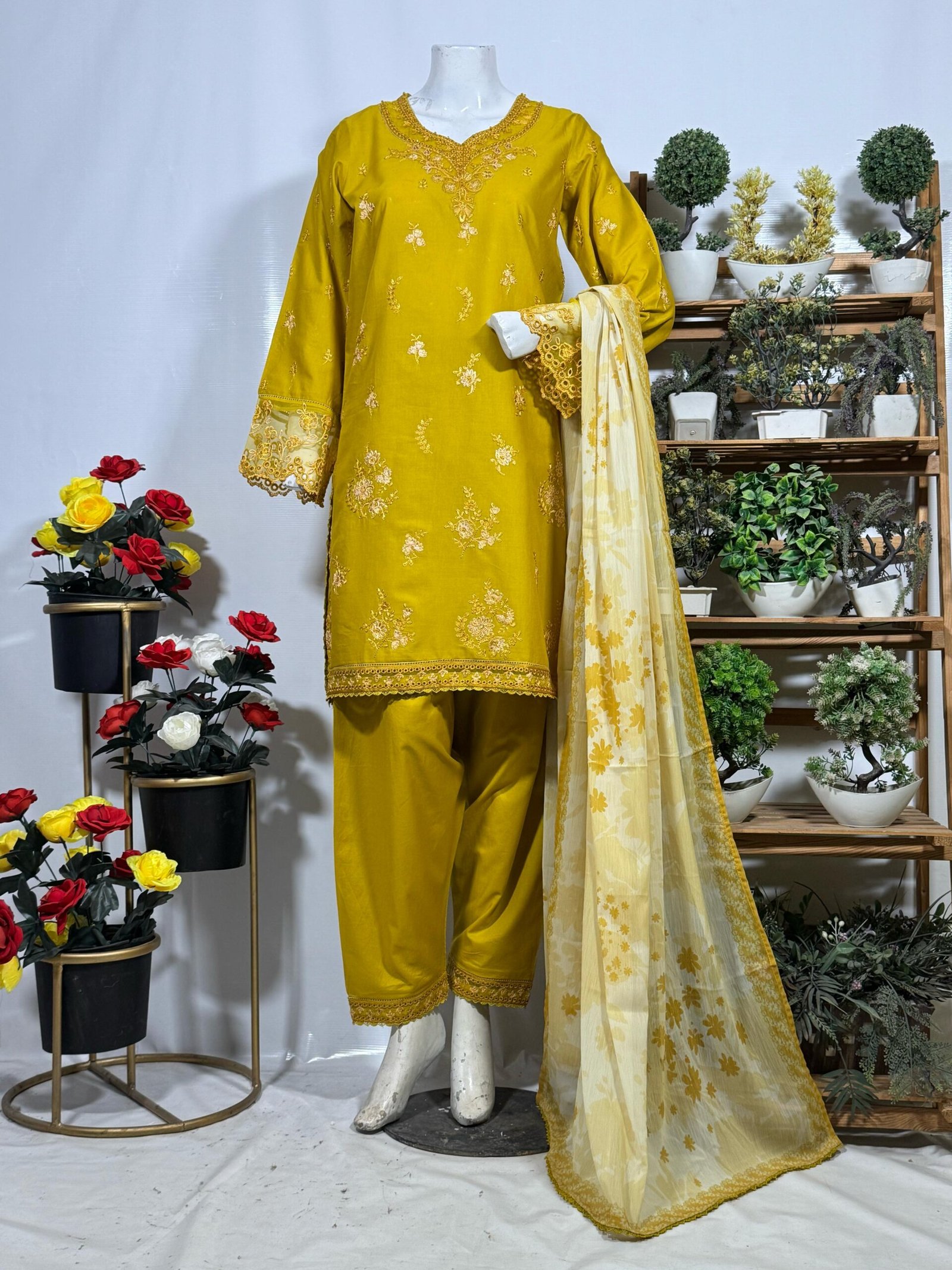 Premium quality fabric with intricate embroidery on the neckline and sleeves.