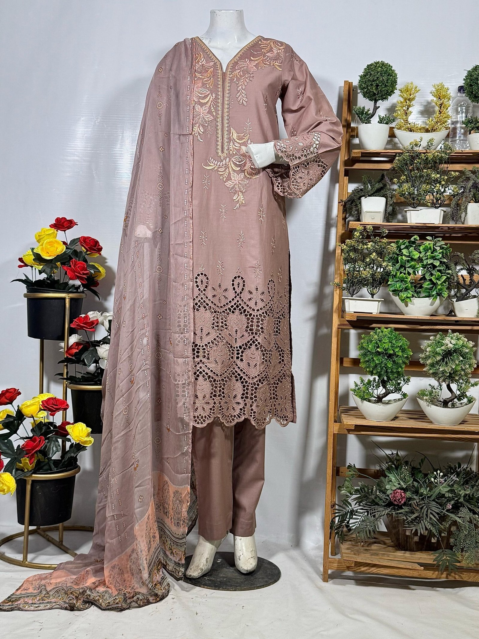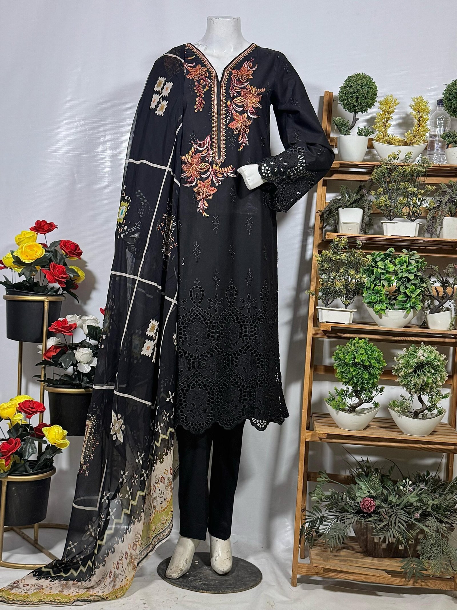Premium quality fabric with intricate embroidery on the neckline and sleeves.